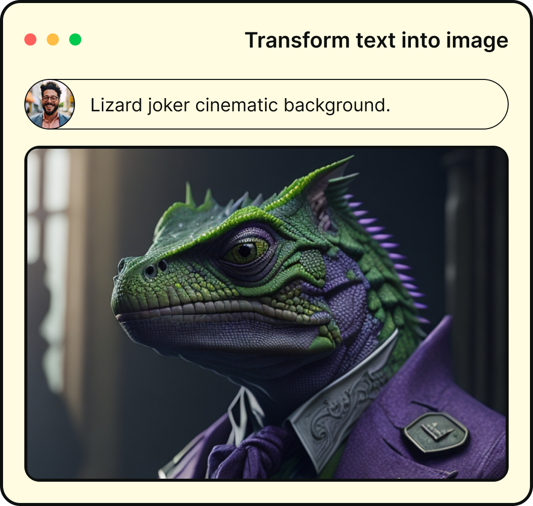 Our text-to-image feature allows you to describe a scene or concept, and the AI will interpret your description to generate an image.